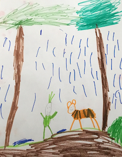 Students in Gr. 2 learned about how artists are inspired by animals and often include them in art works. Examples from artists such as Frida Kahlo, Leonardo da Vinci, and George Rodrique celebrate the special relationships between people and animals. These students created art works inspired by animals, too, showing themselves with their pet or an animal that they would love to have as a pet.